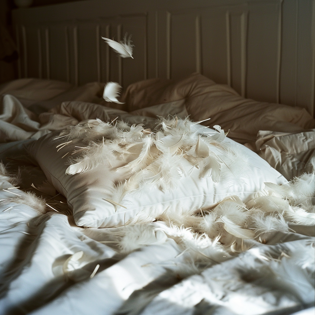 - 1. Жесткость и дискомфорт: перо само по себе является более жестким материалом по сравнению с пухом. Оно может создавать ощущение неравномерной поддержки, что может приводить к дискомфорту во время сна.