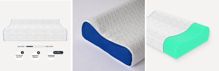 Наполнитель: вязкоэластичная пена с ярко выраженным эффектом памяти, содержащая частицы Milliken, которые препятствуют размножению бактерий и микробов в подушку.