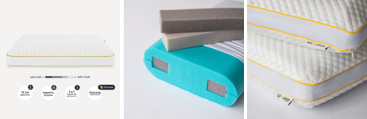 Подушка может быть и в классическом варианте, достаточно перевернуть её и можно с комфортном спать на спине и животе.
