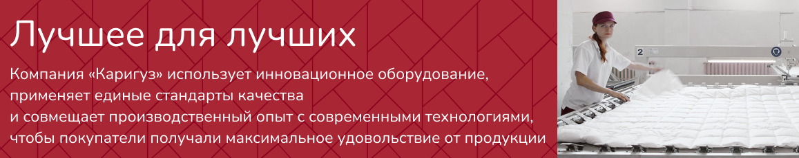 Более 25 лет инноваций и забота о людях являются основой для Научно-производственной корпорации "Каригуз". Продолжая традиции новаторства, компания Каригуз создает технологии нового поколения и продукцию, совершая переворот в производстве постельных принадлежностей. Значимые инновации помогают улучшить качество жизни людей.