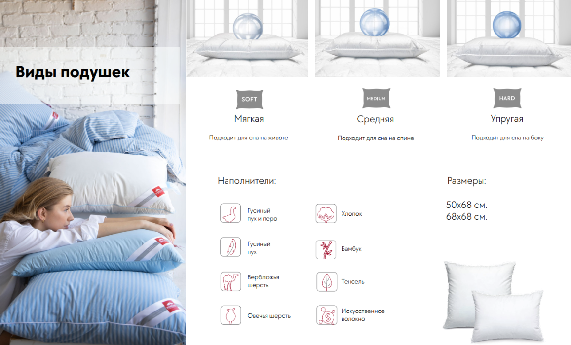- В собственной единственной в России лаборатории пухоперового сырья изучаются, улучшаются и создаются новые наполнители, команда экспертов продумывает дизайны с учетом разных анатомических и эстетических потребностей клиента.