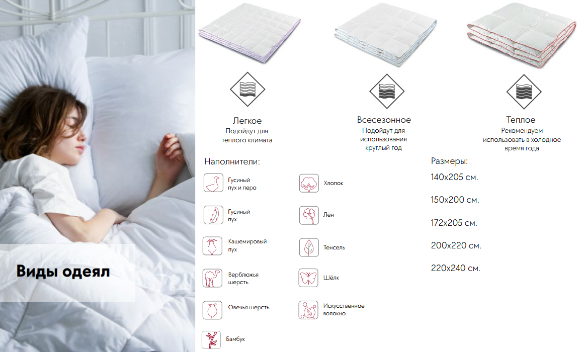 Что такое культура сна? Приведем пример. Основная функция хорошего одеяла – сохранять вас в тепле и уюте. Инновации КАРИГУЗ позволяют добиться гораздо большего эффекта. Например, создавать идеальные климатические условия вашего сна, регулируя уровень температуры и влажности; заботиться о хорошем самочувствии и придавать бодрость, ухаживать за кожей и волосами, предохранять от аллергии.