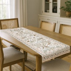 Создать уникальную композицию на обеденном или праздничном столе помогают различные аксессуары. Элементы декора могут быть разные – от классических подсвечников до композиций из живых растений, а также текстильные изделия – к примеру, красивые дорожки на стол с различными узорами и рисунками. Они могут применяться самостоятельно или дополнять скатерти. Часто гобеленовые дорожки (раннеры) используются для украшения торжественного стола – в такие праздники, как Новый Год, Рождество, Пасха и пр., украшены тематическими рисунками или просто узорами. В разделе Текстиля для столовой можно найти несколько десятков дизайнов этого изделия и подобрать уникальный аксессуар для вашего интерьера.