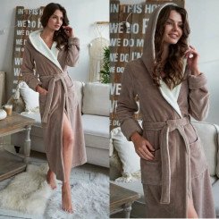 Халат женский велюровый "Vien" Lady с капюшоном pudra 52 (2XL)