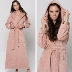 Халат женский велюровый "Vien" Lady с капюшоном pudra 44 (S)