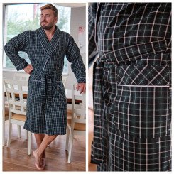 - Тонкие мужские хлопковые халаты. Идеальный вариант для теплого времени года, могут использоваться в качестве банного халата, в сауне, спа или бане. Полностью натуральный гипоаллергенный материал (100% хлопок) приятен для кожи, отлично впитывает влагу и обеспечивает хорошую терморегуляцию.