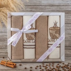 Комплект махрово-вафельных полотенец для кухни 4 шт. "Ceylin's" Кофе Латте/коричневый 40*60 см