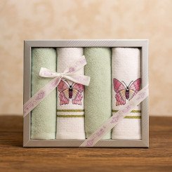 Комплект махрово-вафельных полотенец для кухни 4 шт. "Ceylin's" Бабочки/зеленый 40*60 см