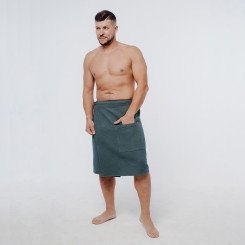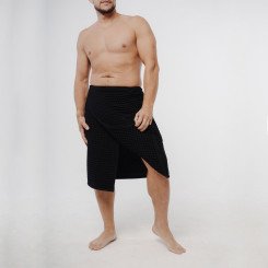 Килты изготавливаются из натуральных материалов – махрового или вафельного полотна. Махровые модели более теплые и подходят для зимнего периода, а вафельные – легкие и отлично впитывают влагу, что делает их идеальными для летнего использования. Вафельное полотно также создает легкий массажный эффект благодаря своему рельефному строению.