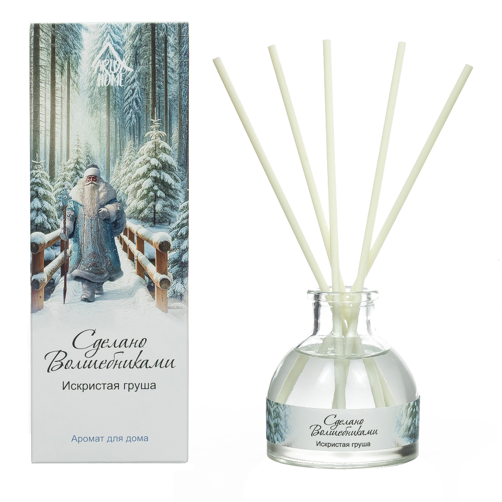 Аромадиффузор - простой и элегантный способ наполнить дом праздничным ароматом. Праздничный аромат раскрывается яркой свежестью лимона, словно первые искры бенгальских огней в морозном воздухе. В сердце композиции — игристая мелодия сочных груш и сладковатого чернослива, создающая ощущение волшебства и радости. Благородный шлейф из тёплой ванили и древесного сандала окутывает мягким, уютным облаком, напоминая о домашнем уюте и новогодних традициях. Этот аромат словно воплощает атмосферу праздника: от искрящегося предвкушения до согревающего уюта рождественского вечера. Рекомендации по использованию: размещайте в центральной части дома, переворачивайте палочки каждые два дня для поддержания аромата, регулируйте интенсивность числом палочек, не ставьте под прямые солнечные лучи и рядом с источниками тепла (это ускоряет испарение), объём 50 мл рассчитан на 1,5–2 месяца (срок может варьироваться в зависимости от размера помещения, системы отопления и места размещения).