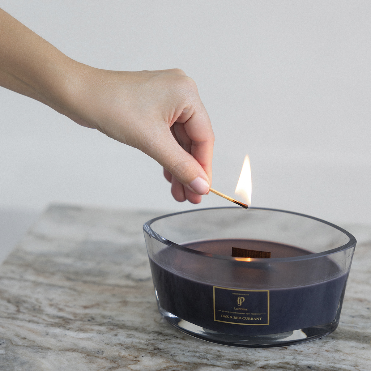 Коллекция ароматов от La Prima изготовлена французскими парфюмерами из самых качественных компонентов и эфирных масел. Яркие ноты красной смородины со свежими оттенками цитрусовых. Насыщенный древесный аромат ветивера и теплые базовые ноты дуба в сочетании с уютным сандалом обволакивают и дарят умиротворение. Аромасвеча позволит отдохнуть и расслабиться под уютные звуки потрескивающего пламени. Свеча не только наполнит комнату приятным ароматом, но и станет стильным аксессуаром. Чтобы насладиться потрясающим ароматом, необходимо просто зажечь свечу и дождаться, пока он полностью наполнит пространство вокруг. Свечу рекомендуется располагать в центральной части дома для равномерной ароматизации. Аромасвеча La Prima расчитана на 10 часов горения.