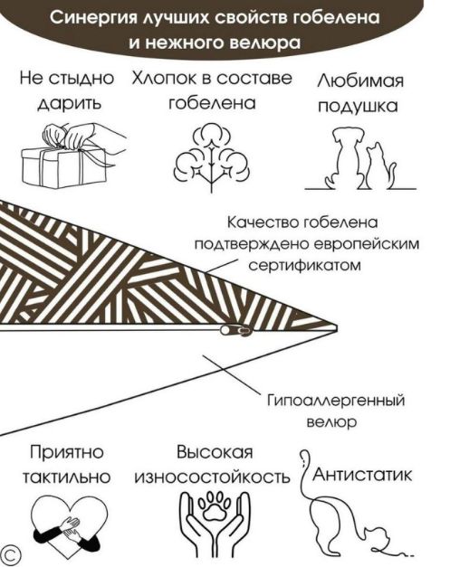 Откройте для себя мир роскоши и стиля с декоративной двусторонней гобеленовой наволочкой «Моррис»! Эта наволочка станет настоящим украшением вашего дома и добавит изысканности вашему интерьеру. Не упустите возможность обновить свой дом с помощью этой гобеленовой наволочки «Моррис»! Гобелен - ткань с правильным переплетением пряжи, сотканная из шерстяных, синтетических и хлопчатобумажных нитей. Добавление синтетических нитей в состав ткани, дает возможность сохранять цветовую насыщенность, износостойкость и предотвращает усадку и потерю цвета. Ткань для наволочек закупается на двух лучших ткацких фабриках Испании, высокий уровень качества которых подтвержден сертификатом качества OEKO-TEX Standard 100 и многолетней безупречной работой на Европейском рынке. Наволочка подходит для подушек размером от 45 до 50 см, снабжена молнией. Подарите себе и своим близким комфорт и стиль, который будет радовать вас каждый день.