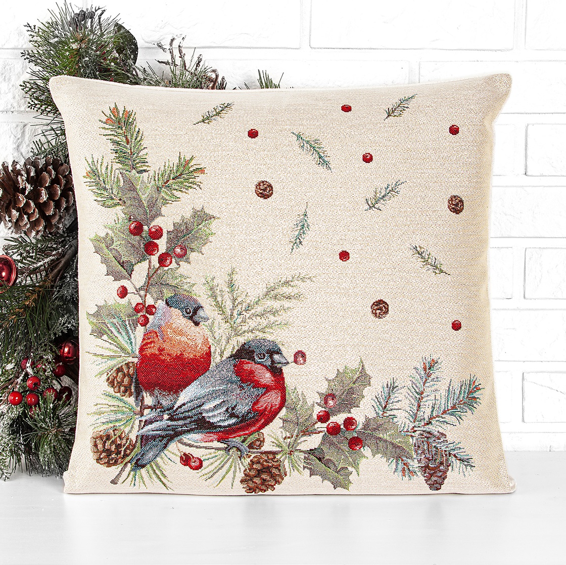 Декоративная наволочка "Гобелен" Новогодние друзья Снегири 45*45 (±2) см