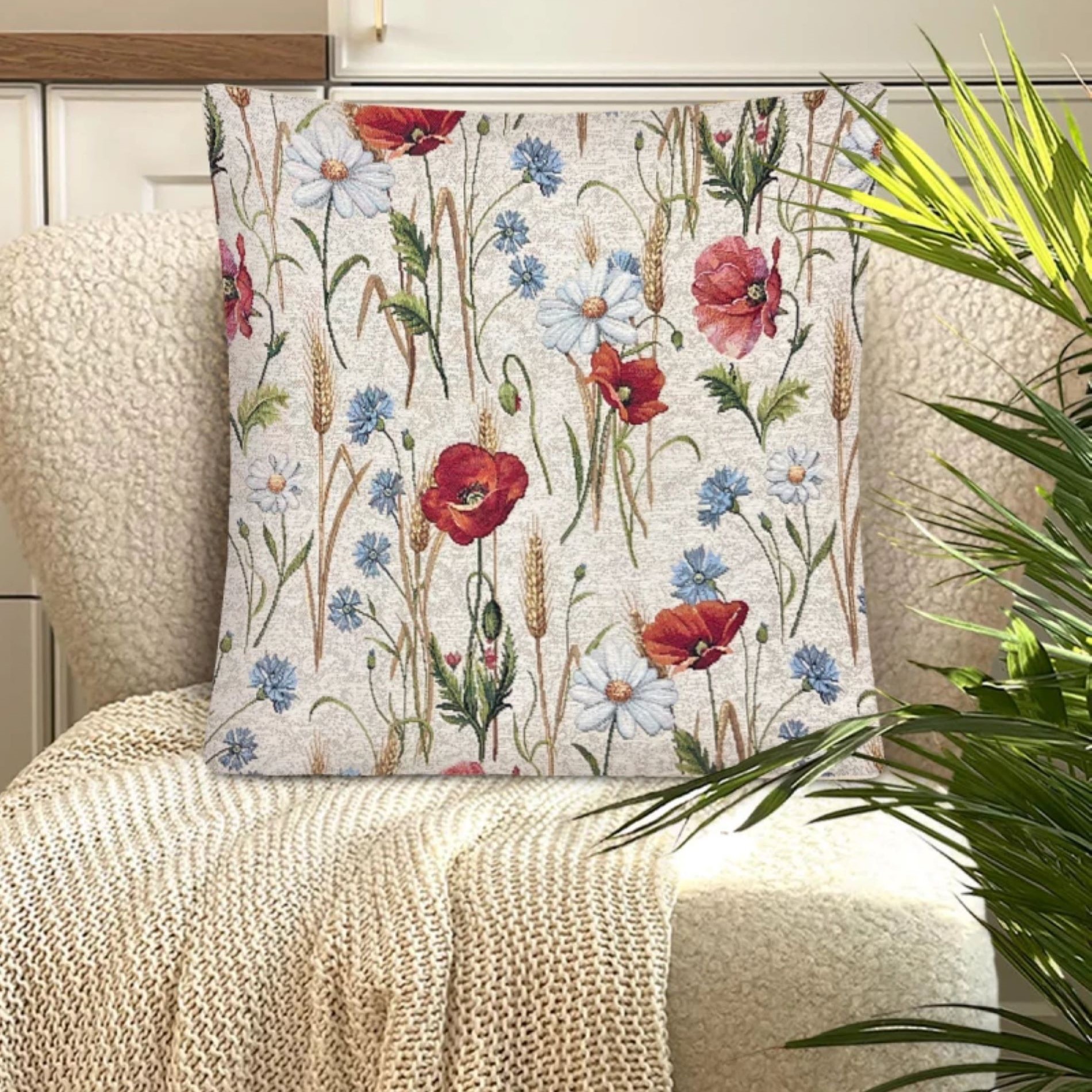 Декоративная наволочка "Гобелен" Разнотравье Маки фон 45*45 (±2) см