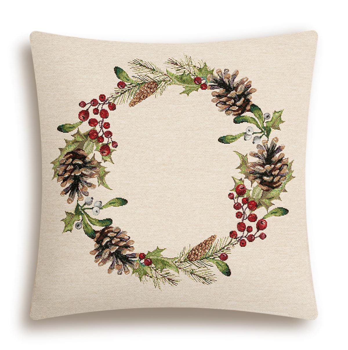 Декоративная наволочка "Гобелен" Еловый венок С Новым годом 45*45 (±2) см