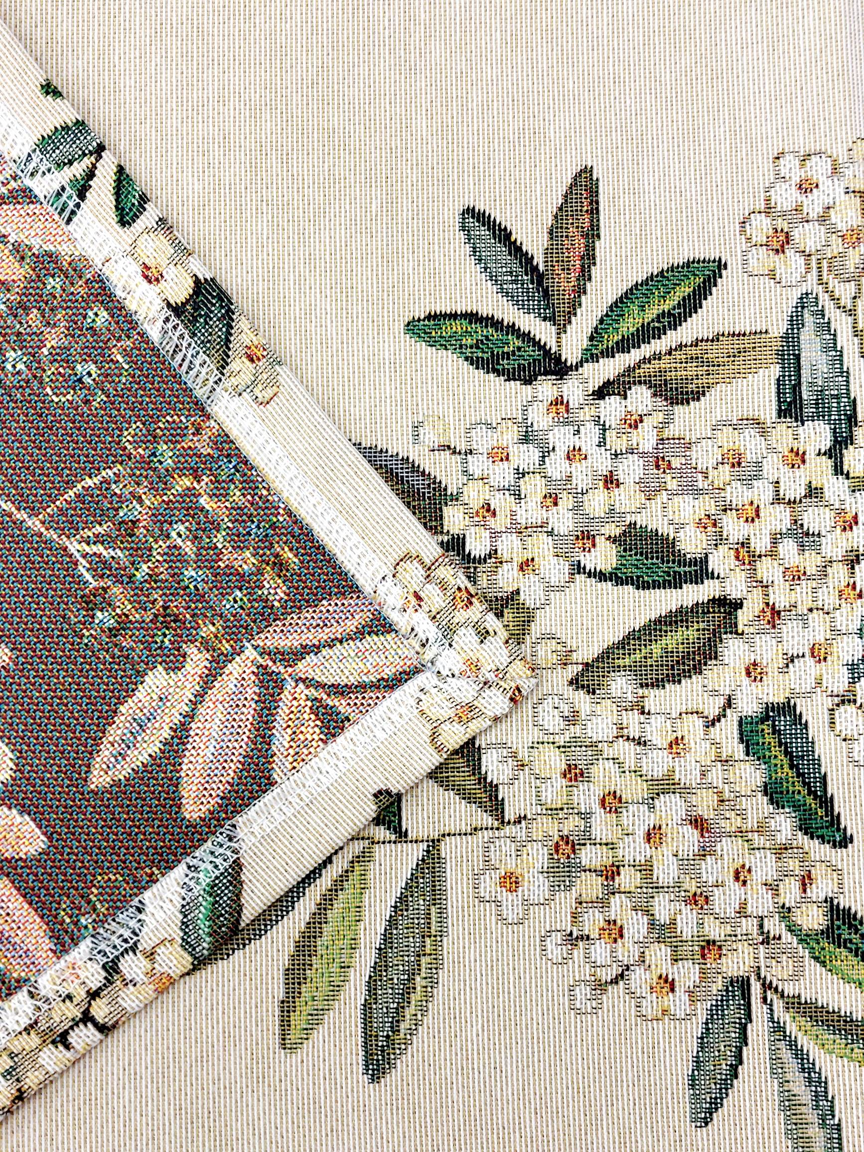 Столовое белье Гобелен можно использовать для сервировки праздничного и повседневного стола, защиты мебели от капель, царапин и горячей посуды, а также в качестве декоративного элемента. Гобелен-ткань с правильным переплетением пряжи, имеющий множество различных оттенков и расцветок. Это плотный и тяжелый материал, сотканный из шерстяных, синтетических и хлопчатобумажных нитей. Благодаря своему составу он еще и экологичен. Гобеленовые узоры – самые прочные и стойкие к истиранию и выцветанию за счет переплетения нитей разных цветов, а не окрашивания ткани.