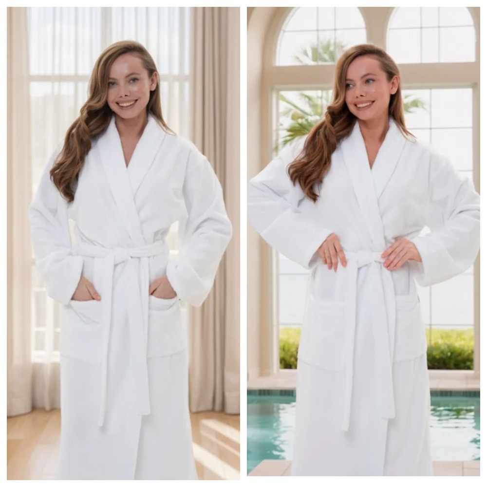 Универсальный махровый халат "Vien" — это практичное решение для дома, бани или отдыха.Этот халат выполнен из высококачественного материала, состоящего из 100% натурального хлопка, что обеспечивает отличную впитываемость, мягкость и легкость ухода.Махровая хлопковая ткань хорошо впитывает влагу, позволяет коже дышать и обеспечивает полный комфорт. Вещь из такого материала невероятно удобна и практична, будет востребована в любой период.Продуманный дизайн подходит как мужчинам, так и женщинам, а универсальный размер гарантирует идеальную посадку. Модель классического фасона на запахе, талия подчеркнута съемным пояском, по бокам два удобных кармана Длина изделия обеспечивает комфорт и свободу движений.Этот халат станет отличным выбором для тех, кто ценит уют и качество.