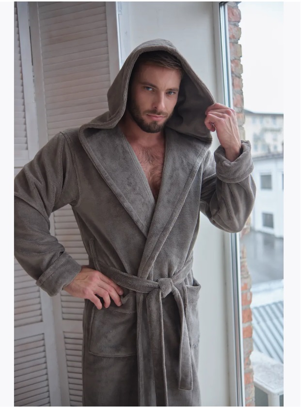 Велюровый халат c капюшоном Vien для стильных мужчин, предпочитающих комфорт в одежде. Манжет рукава легко подвернуть по длине. Шлевки пояса двухуровневые, для регулировки по росту. Карманы накладные, глубокие. Изделие хорошо сидит по фигуре и имеет комфортную длину. Теплый велюровый удлиненный халат с большими карманами представлен в разных размерах, темного насыщенного цвета, однотонные, манжеты на рукавах отворачиваемые, удобно регулируемые, шлевки для пояса двухуровневые для регулировки по росту. Стильный и молодежный фасон домашнего халата имеет свободный крой, в составе Double touch cotton - натуральная хлопковая (70%) ткань из Турции и микрофибра (30%), благодаря которым халат является мягким, пушистым, утепленным и подходит для зимних семейных вечеров.