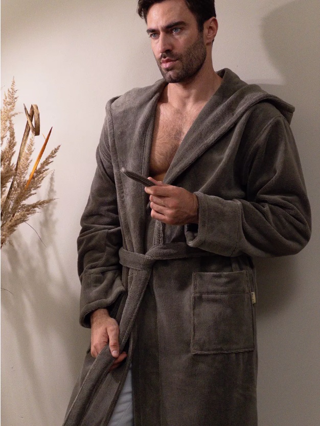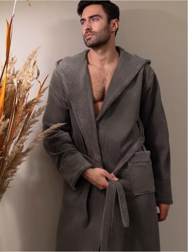 Велюровый халат c капюшоном Vien для стильных мужчин, предпочитающих комфорт в одежде. Манжет рукава легко подвернуть по длине. Шлевки пояса двухуровневые, для регулировки по росту. Карманы накладные, глубокие. Изделие хорошо сидит по фигуре и имеет комфортную длину. Теплый велюровый удлиненный халат с большими карманами представлен в разных размерах, темного насыщенного цвета, однотонные, манжеты на рукавах отворачиваемые, удобно регулируемые, шлевки для пояса двухуровневые для регулировки по росту. Стильный и молодежный фасон домашнего халата имеет свободный крой, в составе Double touch cotton - натуральная хлопковая (70%) ткань из Турции и микрофибра (30%), благодаря которым халат является мягким, пушистым, утепленным и подходит для зимних семейных вечеров.