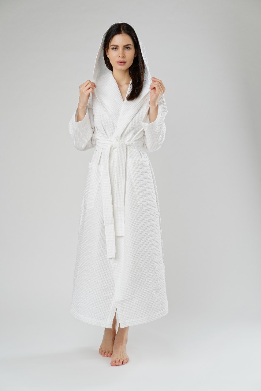Такие халаты прекрасно впитывают влагу, быстро сохнут, а рельефный рисунок в структуре ткани обеспечивает массажный эффект и принесет эстетическое удовольствие.