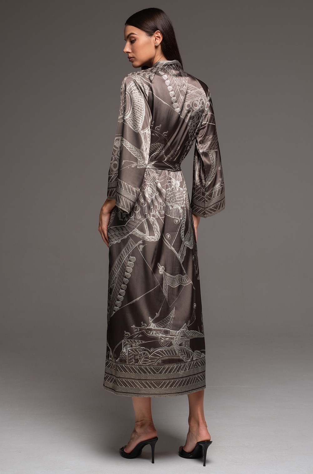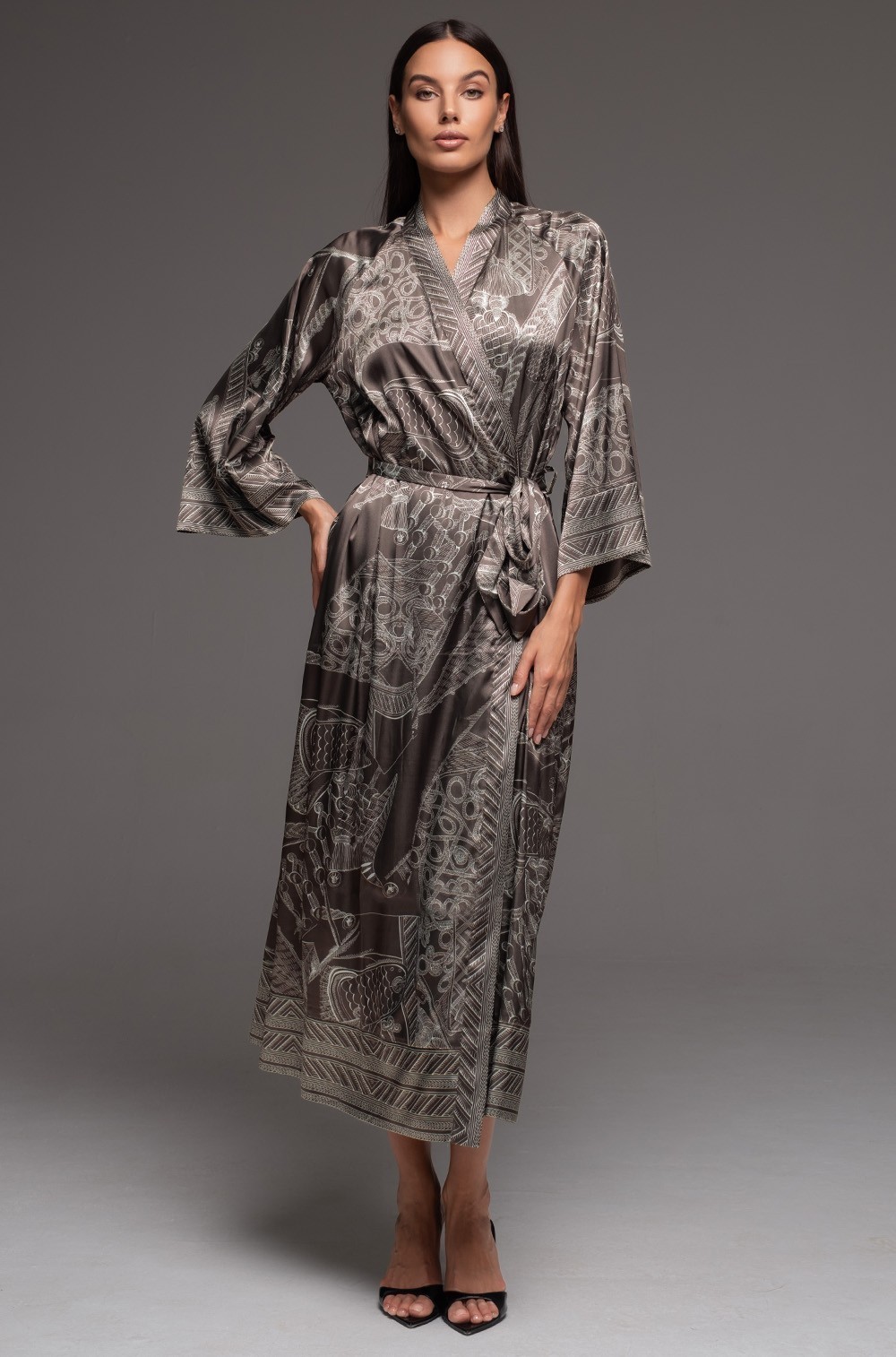 Длинный запашной халат Mia-Amore с широким длинным рукавом, выполнен из принтованного смесового шелка. По бокам обработаны карманы. Линию талии можно подчеркнуть за счет пояса в комплекте. Халат из натурального шелка подарит приятные тактильные ощущения и комфорт в носке: прохладная на ощупь, легкая и невесомая ткань практически не чувствуется на теле. Шелк не вызывает аллергической реакции и раздражения на нежной, чувствительной коже, а также благотворно воздействует на нее благодаря особым протеинам, входящим в состав волокон. Шелковое полотно отлично пропускает воздух, позволяя коже дышать и хорошо впитывает влагу.