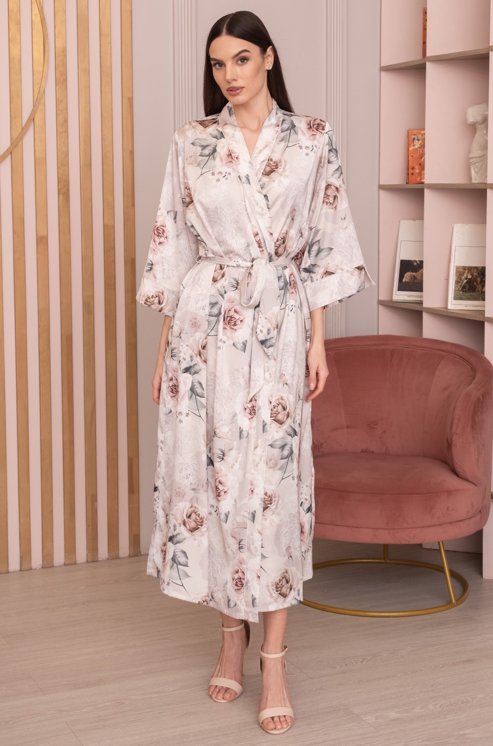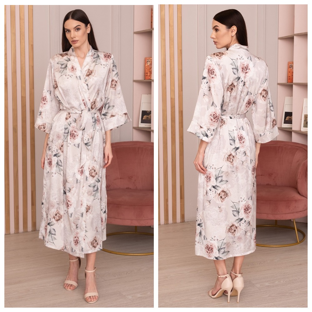 Длинный запашной халат Mia-Amore с широким длинным рукавом, выполнен из принтованного смесового шелка. По бокам обработаны карманы. Линию талии можно подчеркнуть за счет пояса в комплекте. Халат из натурального шелка подарит приятные тактильные ощущения и комфорт в носке: прохладная на ощупь, легкая и невесомая ткань практически не чувствуется на теле. Шелк не вызывает аллергической реакции и раздражения на нежной, чувствительной коже, а также благотворно воздействует на нее благодаря особым протеинам, входящим в состав волокон. Шелковое полотно отлично пропускает воздух, позволяя коже дышать и хорошо впитывает влагу.