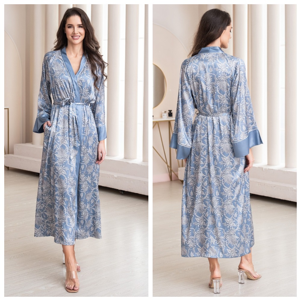 Длинный запашной халат-кимоно Mia-Amore с широкими рукавами, однотонной отделкой и контрастным кантом. В боковых швах расположены карманы. Модель дополнена поясом чтобы подчеркнуть линию талии. Халат из натурального шелка подарит приятные тактильные ощущения и комфорт в носке: прохладная на ощупь, легкая и невесомая ткань практически не чувствуется на теле. Шелк не вызывает аллергической реакции и раздражения на нежной, чувствительной коже, а также благотворно воздействует на нее благодаря особым протеинам, входящим в состав волокон. Шелковое полотно отлично пропускает воздух, позволяя коже дышать и хорошо впитывает влагу.