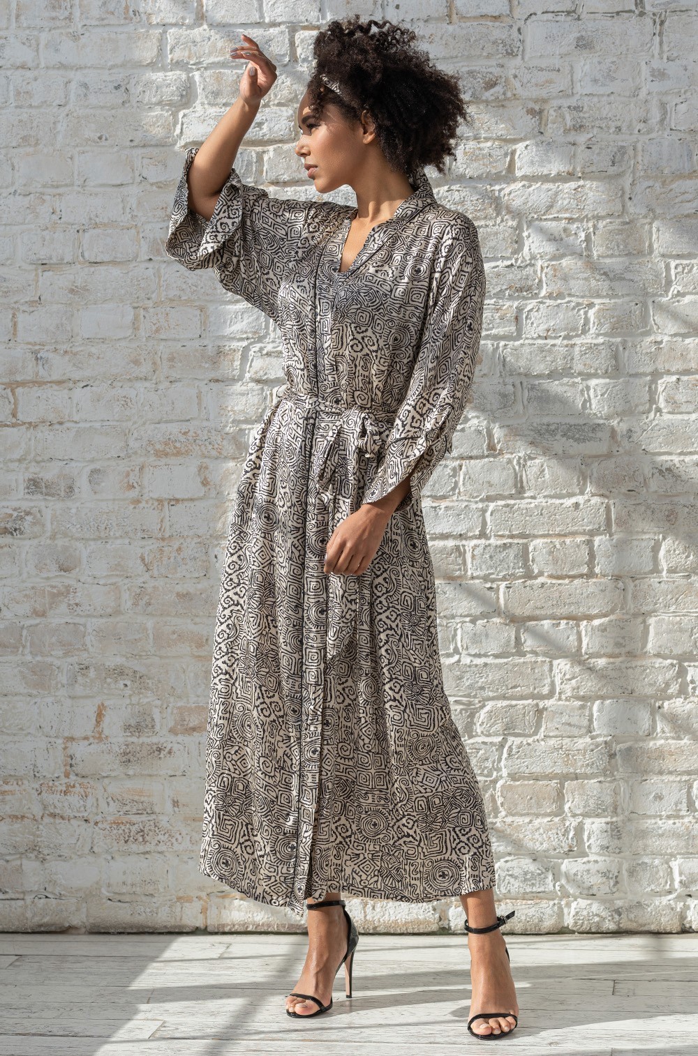 Длинный запашной халат-кимоно Mia-Amore с рукавом 3/4. В боковых швах обработаны карманы. Линию талии можно подчеркнуть за счет пояса, который идет в комплекте. Модель выполнена из принтованного смесового шелка с отделкой в виде контрастного канта по низу рукавов и бортам. Изделия из вискозы и шелка приятны к телу благодаря мягкой струящейся фактуре ткани. Материал хорошо пропускает воздух и позволяет коже дышать, волокно быстро впитывает влагу и быстро сохнет.