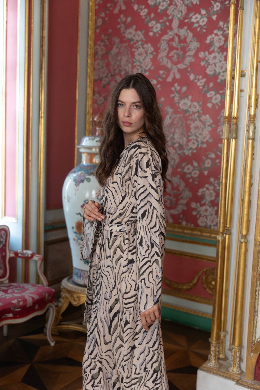 Длинный лёгкий халат из вискозы — идеальный выбор для комфорта и уюта. Ткань модели мягкая и приятная на ощупь. Удобный крой, позволяет двигаться свободно и не сковывает движений. Вискоза известна своими гипоаллергенными свойствами, что делает этот халат безопасным даже для чувствительной кожи. Ткань обладает отличной воздухопроницаемостью, поэтому кожа будет «дышать» даже в жаркие дни. Кроме того, этот материал быстро впитывает влагу и высыхает, что делает его идеальным для использования после душа или ванны. Лёгкий и приятный на ощупь халат из вискозы станет вашим любимым домашним нарядом.