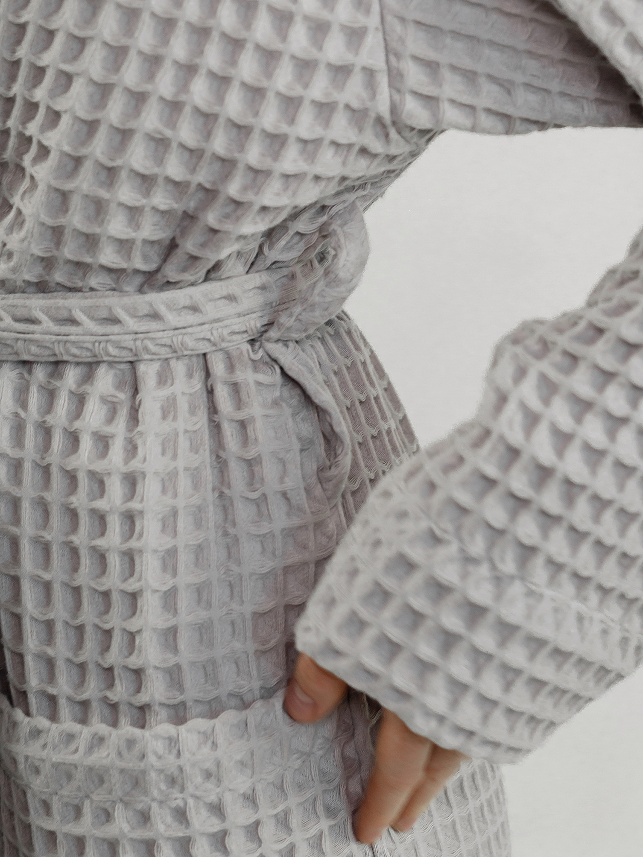 Универсальный вафельный халат из премиум полотна Бохо станет идеальным выбором как для домашнего использования в любое время года, так и для посещения бани, бассейна, спа-салонов. Отличительная особенность вафельного полотна - особое переплетение волокон, в результате которого получается 3D узор, такой вид плетения придает ткани особую мягкость и легкость. Отлично пропускает воздух, обладает гигроскопичностью и дает коже дышать, поэтому в теплое время года (летом и весной) в этом халате можно чувствовать себя комфортно и уютно. В холодное время года вафельные халаты также будут очень удобны и практичны, поскольку они достаточно плотные и хорошо удерживают тепло. Очень легкие халаты, не сковывают движений и вызывают ощущение комфорта и свободы. Такие халаты прекрасно впитывают влагу, быстро сохнут, а рельефный рисунок в структуре ткани обеспечивает массажный эффект и принесет эстетическое удовольствие.
