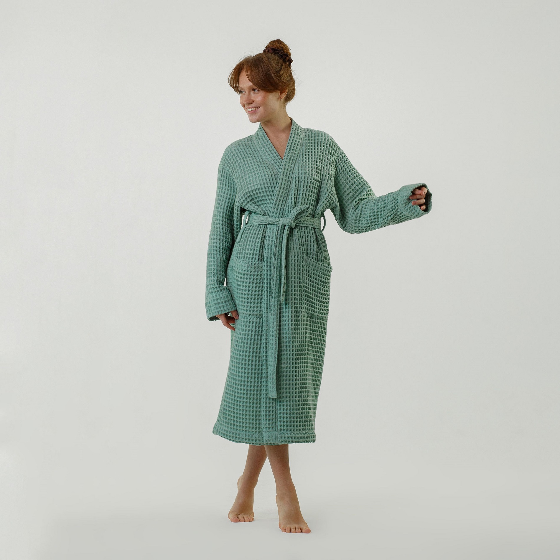 Отлично пропускает воздух, обладает гигроскопичностью и дает коже дышать, поэтому в теплое время года (летом и весной) в этом халате можно чувствовать себя комфортно и уютно. В холодное время года вафельные халаты также будут очень удобны и практичны, поскольку они достаточно плотные и хорошо удерживают тепло. Очень легкие халаты, не сковывают движений и вызывают ощущение комфорта и свободы. Такие халаты прекрасно впитывают влагу, быстро сохнут, а рельефный рисунок в структуре ткани обеспечивает массажный эффект и принесет эстетическое удовольствие.