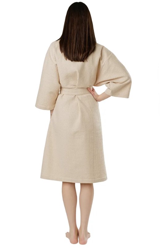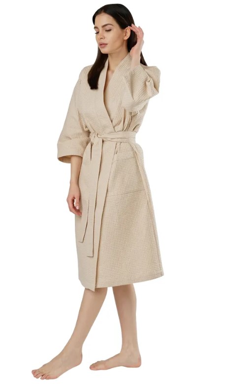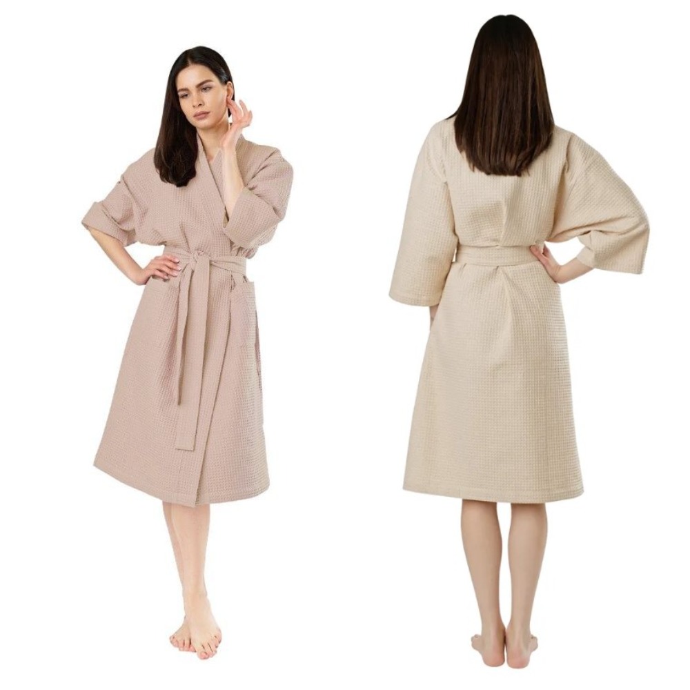 Универсальный вафельный халат станет идеальным выбором как для домашнего использования в любое время года, так и для посещения бани, бассейна, спа-салонов. Натуральная вафельная ткань из хлопка, отлично пропускает воздух, обладает отличной гигроскопичностью и дает коже дышать, поэтому в теплое время года (летом и весной) в этом халате можно чувствовать себя комфортно и уютно. В холодное время года вафельные халаты также будут очень удобны и практичны, поскольку они достаточно плотные и хорошо удерживают тепло. Очень легкие халаты, не сковывают движений и вызывают ощущение комфорта и свободы. Воротник кимоно, карманы и манжеты рукава отделаны однотонным кантом, что придает данным халатам некую строгость и выдержанность в классическом стиле.