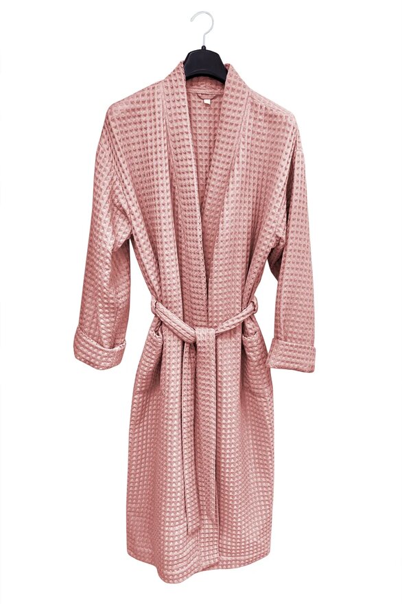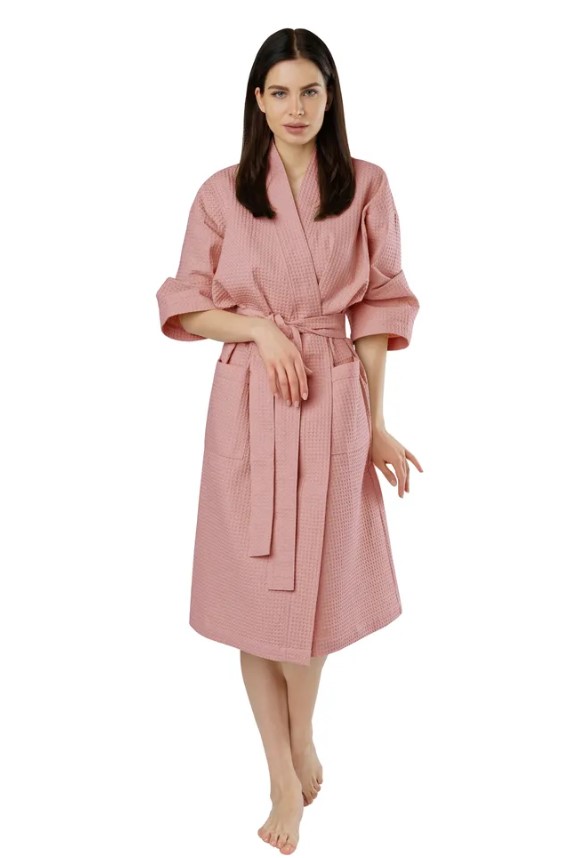 Универсальный вафельный халат станет идеальным выбором как для домашнего использования в любое время года, так и для посещения бани, бассейна, спа-салонов. Натуральная вафельная ткань из хлопка, отлично пропускает воздух, обладает отличной гигроскопичностью и дает коже дышать, поэтому в теплое время года (летом и весной) в этом халате можно чувствовать себя комфортно и уютно. В холодное время года вафельные халаты также будут очень удобны и практичны, поскольку они достаточно плотные и хорошо удерживают тепло. Очень легкие халаты, не сковывают движений и вызывают ощущение комфорта и свободы. Воротник кимоно, карманы и манжеты рукава отделаны однотонным кантом, что придает данным халатам некую строгость и выдержанность в классическом стиле.