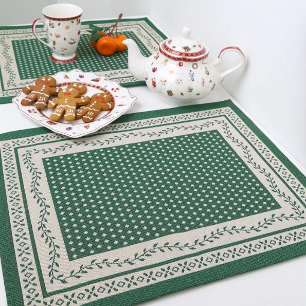 Столовое белье Гобелен можно использовать для сервировки праздничного и повседневного стола, защиты мебели от капель, царапин и горячей посуды, а также в качестве декоративного элемента. Гобелен-ткань с правильным переплетением пряжи, имеющий множество различных оттенков и расцветок. Это плотный и тяжелый материал, сотканный из шерстяных, синтетических и хлопчатобумажных нитей. Благодаря своему составу он еще и экологичен. Гобеленовые узоры – самые прочные и стойкие к истиранию и выцветанию за счет переплетения нитей разных цветов, а не окрашивания ткани. Ткань для столового текстиля закупается на двух лучших ткацких фабриках Испании, высокий уровень качества которых подтвержден сертификатом качества OEKO-TEX Standard 100 и многолетней безупречной работой на Европейском рынке.