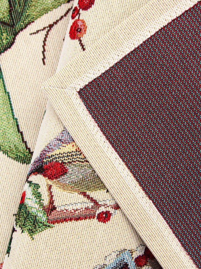 Столовое белье Гобелен можно использовать для сервировки праздничного и повседневного стола, защиты мебели от капель, царапин и горячей посуды, а также в качестве декоративного элемента. Гобелен-ткань с правильным переплетением пряжи, имеющий множество различных оттенков и расцветок. Это плотный и тяжелый материал, сотканный из шерстяных, синтетических и хлопчатобумажных нитей. Благодаря своему составу он еще и экологичен. Гобеленовые узоры – самые прочные и стойкие к истиранию и выцветанию за счет переплетения нитей разных цветов, а не окрашивания ткани.