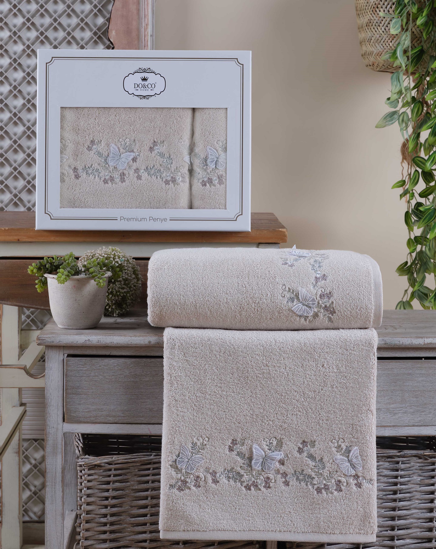 Комплект махровых полотенец 2 шт. "DO&CO" Ella бежевый 50*90 см, 70*140 см
