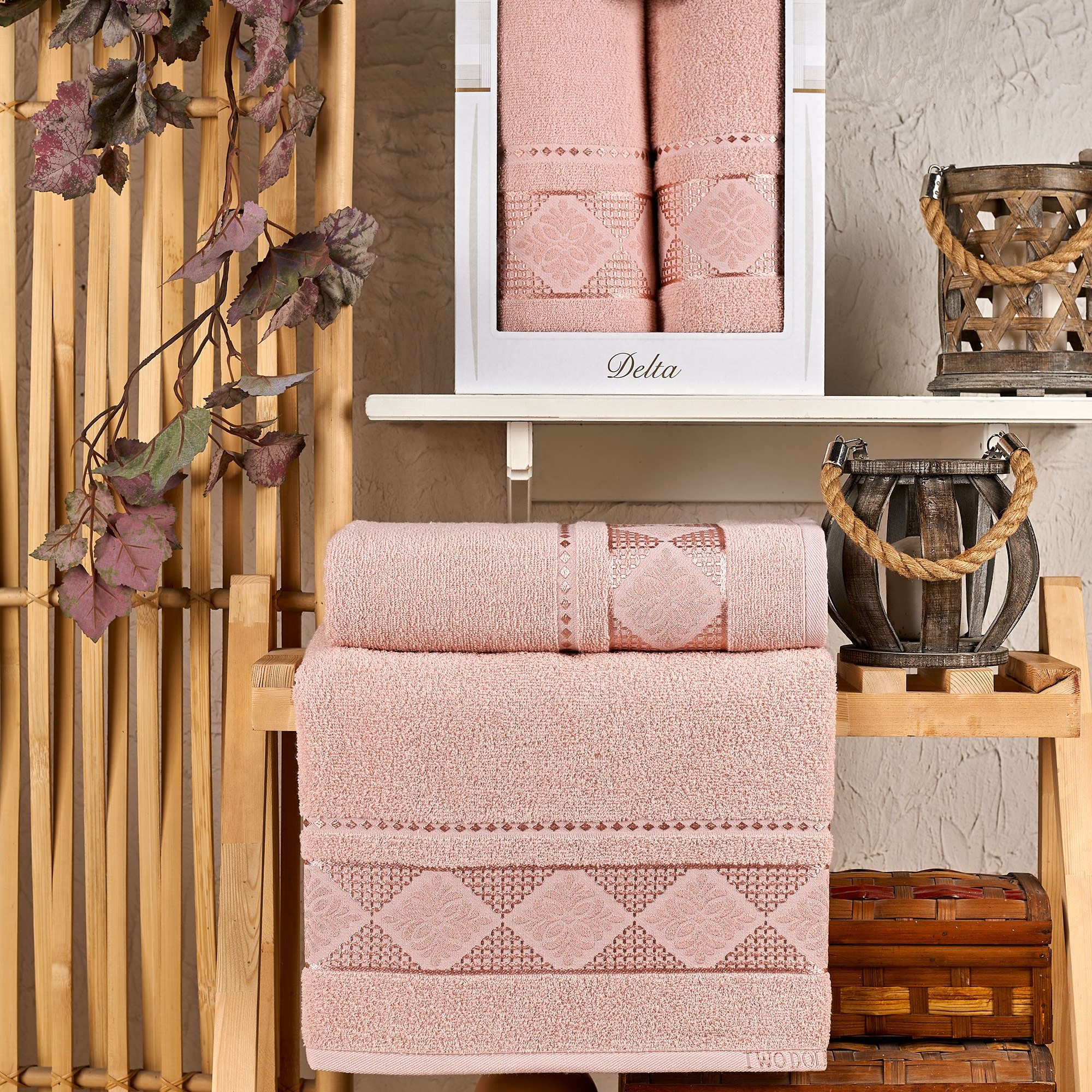 Комплект махровых полотенец 2 шт. "Two Dolphins" Delta пудра 50*90 см, 70*140 см