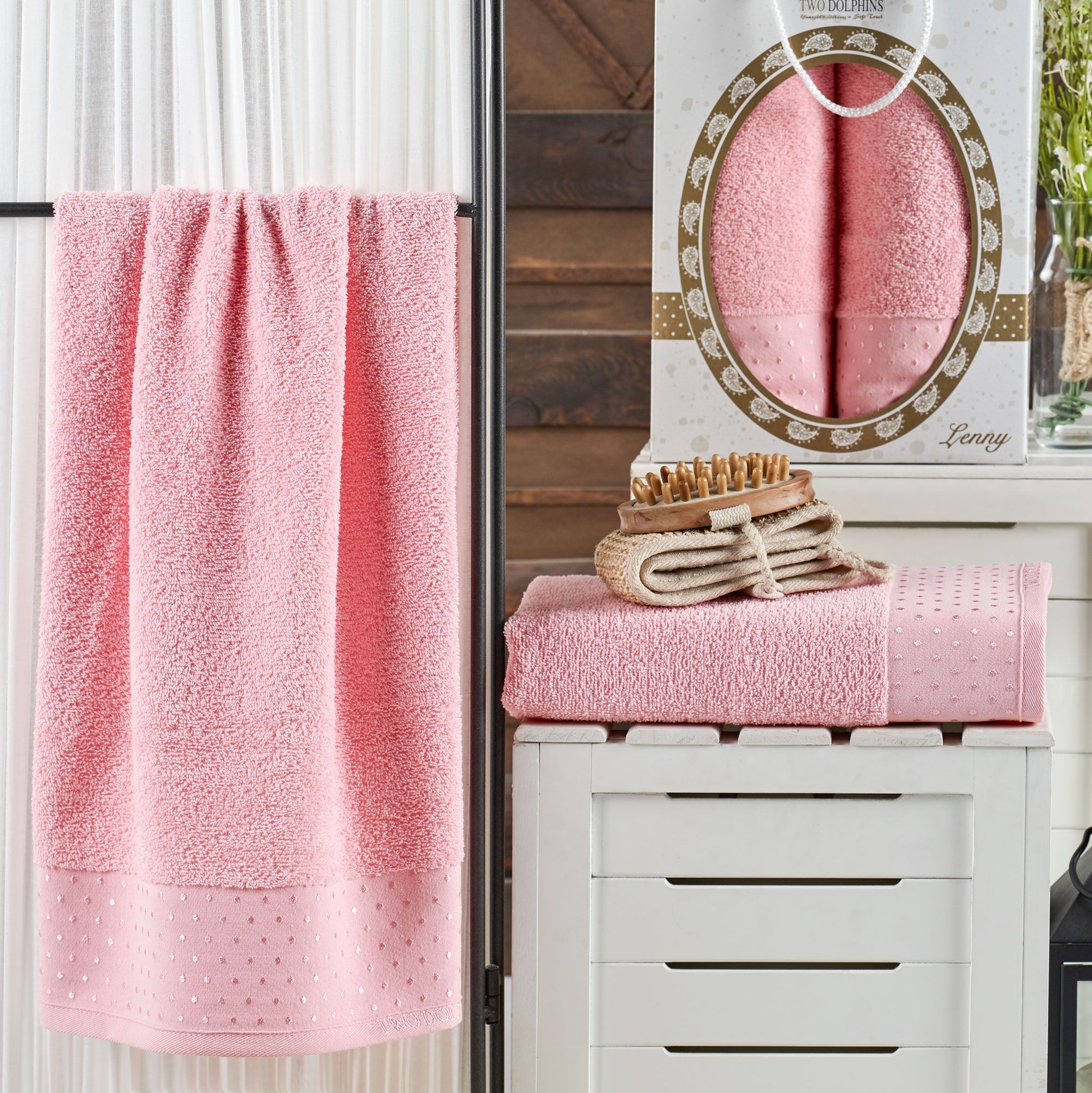 Коллекция махровых полотенец Two Dolphins- это мягкое прикосновение натурального хлопка и ненавязчивые нежные оттенки. Полотенца превосходно впитывают влагу, подходит аллергикам и людям с чувствительной кожей, обладает гипоаллергенными свойствами. Нежный хлопок бережно заботиться о коже, деликатно массируя ее. Махровая ткань прочная, выдерживает большое количество стирок, для тех, кто заботиться о своем здоровье и привык стирать полотенца часто. Даже спустя многочисленные стирки полотенца не грубеют и не садятся. Сохраняют цвет и форму, и остаются такими же пушистыми. Состав махры натуральный, поэтому такие полотенца обладают отличной износостойкостью, прочностью и будут служить Вам долгое время. Размер полотенец является универсальным и подойдет для каждого. Стильная цветовая палитра комплекта впишется в интерьер любой ванной комнаты. Полотенца декорированы жаккардовым бордюром. Роскошный набор махровых полотенец в подарочной упаковке станут приятным и полезным подарком.