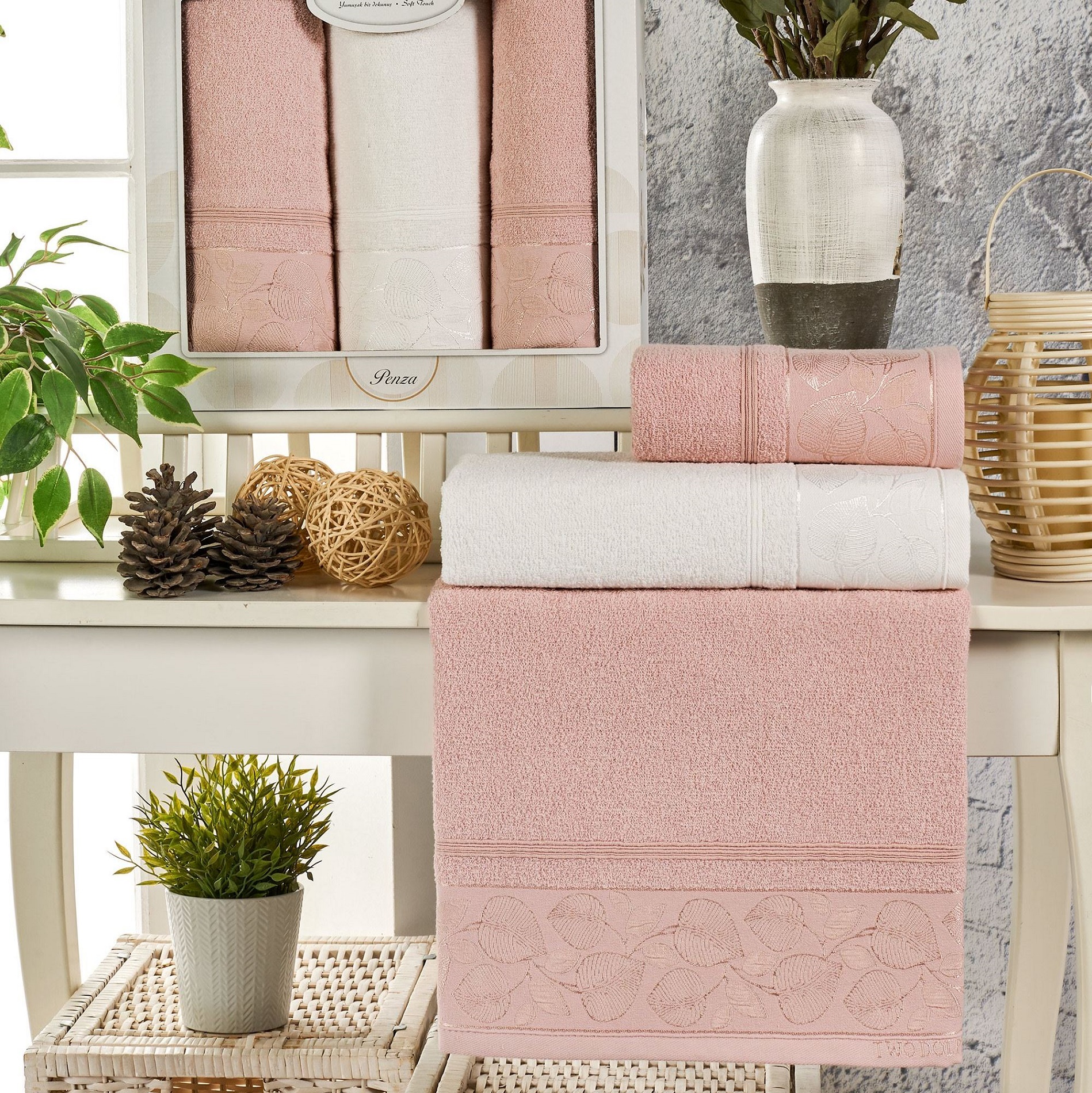 Комплект махровых полотенец 3 шт. "Two Dolphins" Penza пудра 50*90 см-2 шт, 70*140 см-1 шт