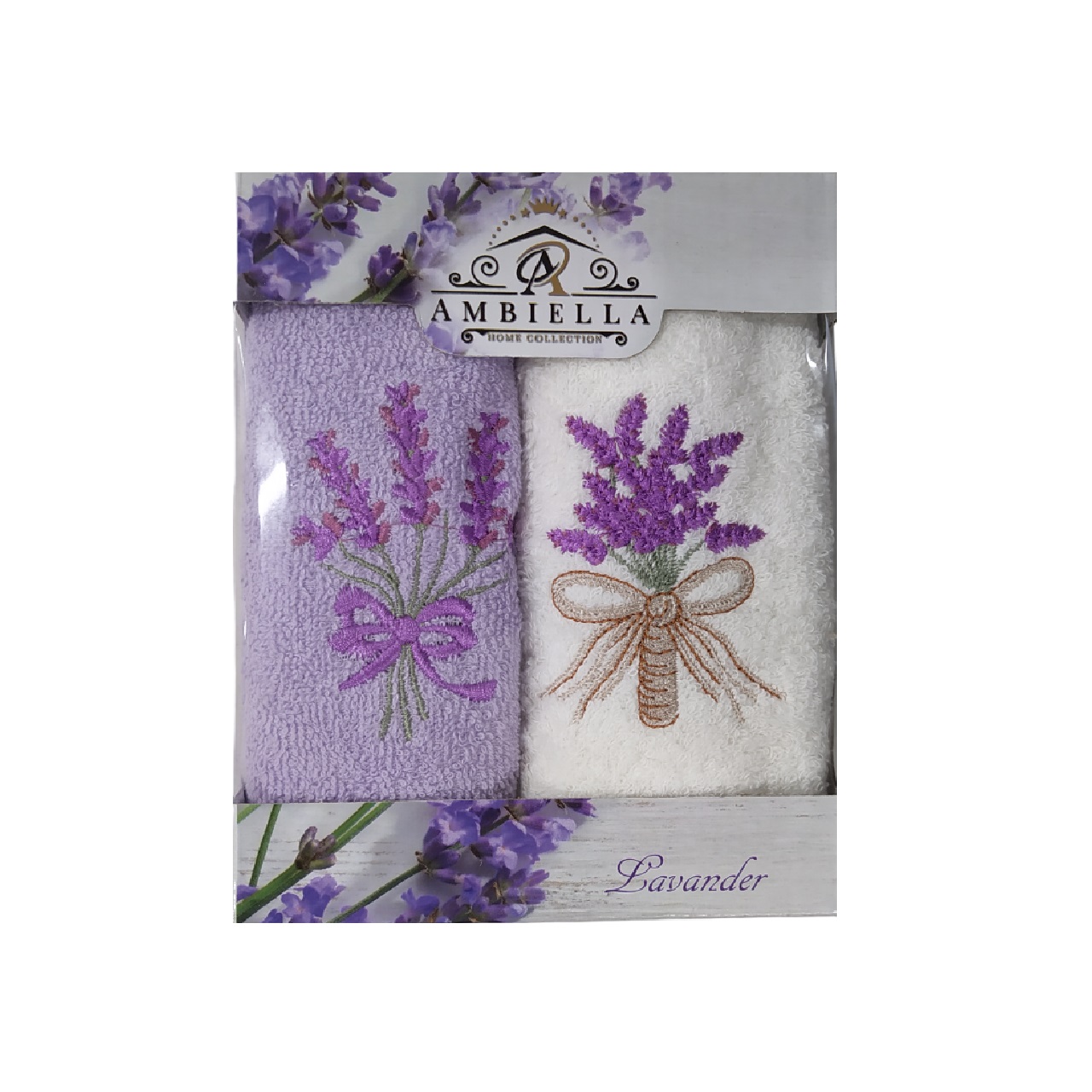 Комплект махровых полотенец для кухни 2 шт. "Ambiella" Лаванда кремовый/сиреневый v1 30*50 см