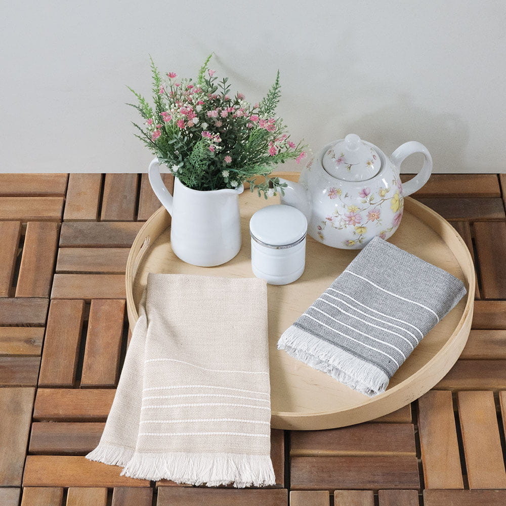 Комплект полотенец турецкого производителя Arya изготовленные из 100% хлопка, созданы для бережного ухода за посудой и функционального использования в быту. Полотенца изготовлены из прочного махрового полотна, обладают хорошими впитывающими свойствами. Структура ткани позволяет воздуху свободно проникать через волокна, что позволяет полотенцу быстрее высыхать. Благодаря натуральному составу полотенца обладают отличной износостойкостью, прочностью и будут служить Вам долгое время. Отличаются мягкостью и гипоаллергенностью. Простой процесс ухода. После стирки не линяют и не выцветают, имеют устойчивое окрашивание. Два гармоничных, натуральных оттенка создадут на вашей кухне уютную атмосферу.