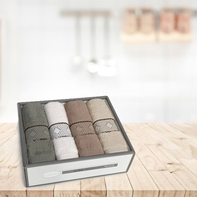 Комплект махровых полотенец Karven из 100% турецкого хлопка создан для бережного ухода за посудой и функционального использования в быту. Основным достоинством полотенца можно считать его впитывающую способность и быстрое высыхание. Также преимущество махрового текстиля в его структуре, материал впитывает в несколько раз больше, чем любые другие ткани. В комплекте четыре полотенца с отделкой в виде вышивки. Гармоничная палитра в пастельных тонах создаст на вашей кухне уютную атмосферу, а процесс приготовления пищи станет более комфортным. Комплект имеет подарочную упаковку. Станет желанным подарком для любой хозяйки и полезным презентом на праздник.