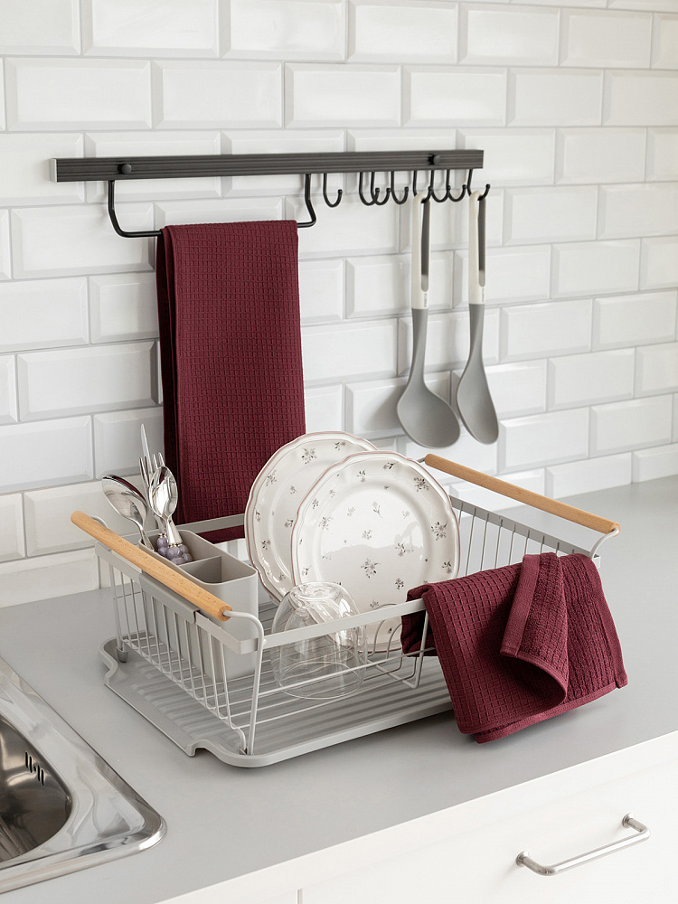 Комплект махровых полотенец для кухни 2 шт "DeNastia" винный/D100422 35*75 см