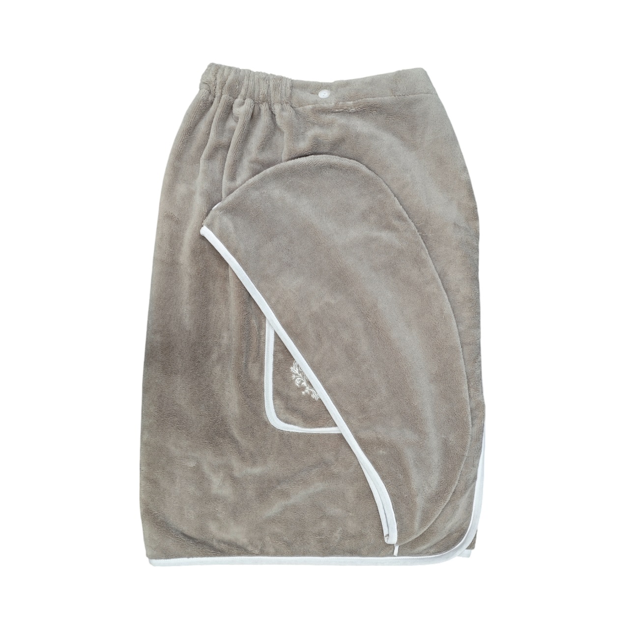 Текстиль для бани и сауны Vien изготовлен из гипоаллергенных тканей, которые дарят ощущение комфорта и уюта. Комплект хорошо пропускает воздух и поддерживает тепловой баланс организма. Мягкий, приятный к телу килт, обладает великолепной впитывающей способностью и предохраняет части тела от перегрева. Килт на резинке, имеется кармашек и отделка в виде вышивки. Чалма защитит волосы, ведь под потолком сауны скапливается самый горячий воздух, который может повредить волосам, а также не допустит перегрева. Такой комплект очень удобен и поможет с большей безопасностью насладиться оздоравливающим действием сауны или бани. Изделие легко стирается и быстро сохнет. Нейтральные оттенки комплекта позволят выбрать вариант на свой вкус. Набор станет приятным и практичным подарком для каждой женщины.