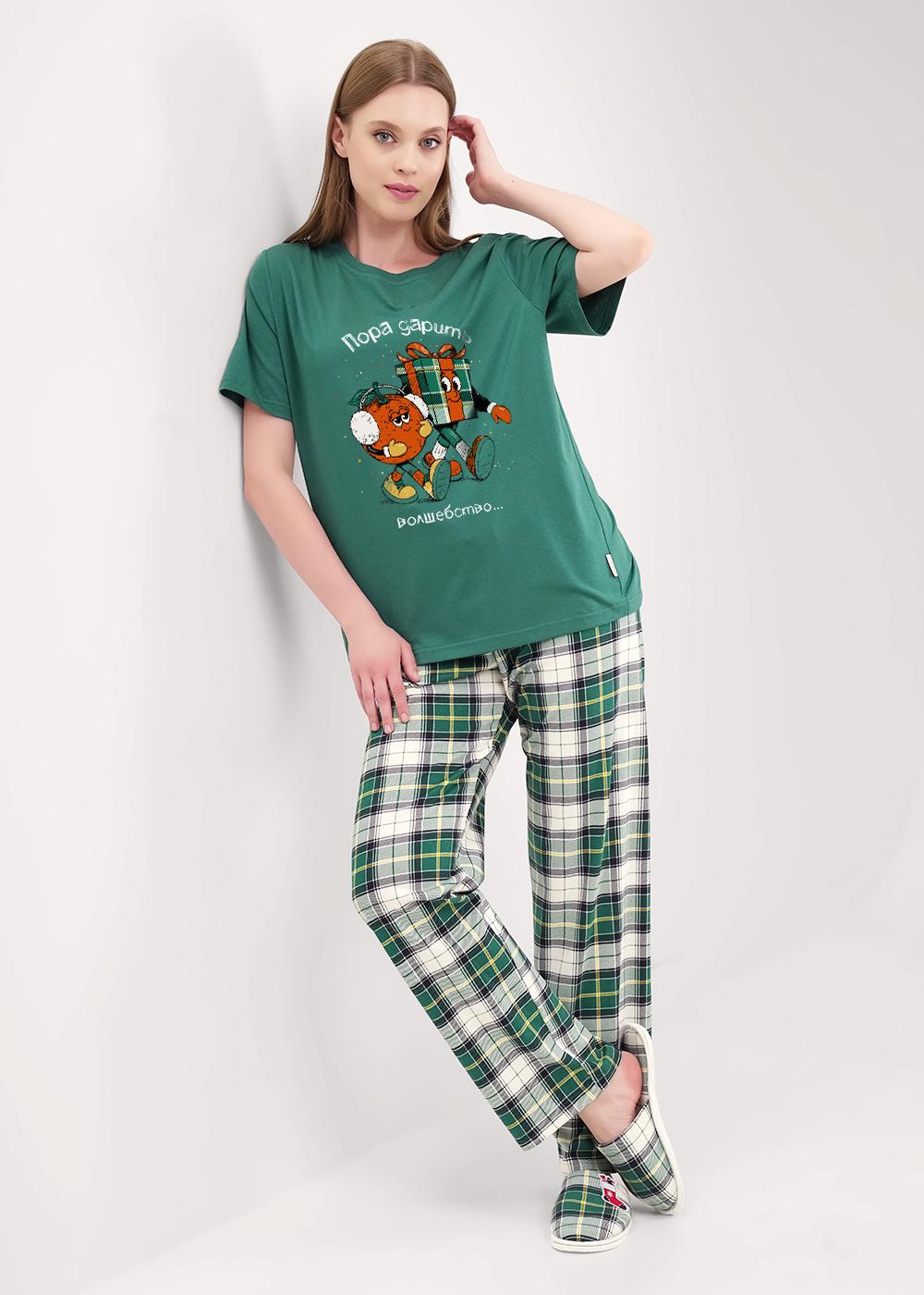 Комплект женский "Clever" Новогоднее чудо зелёный/молочный 46 (M)