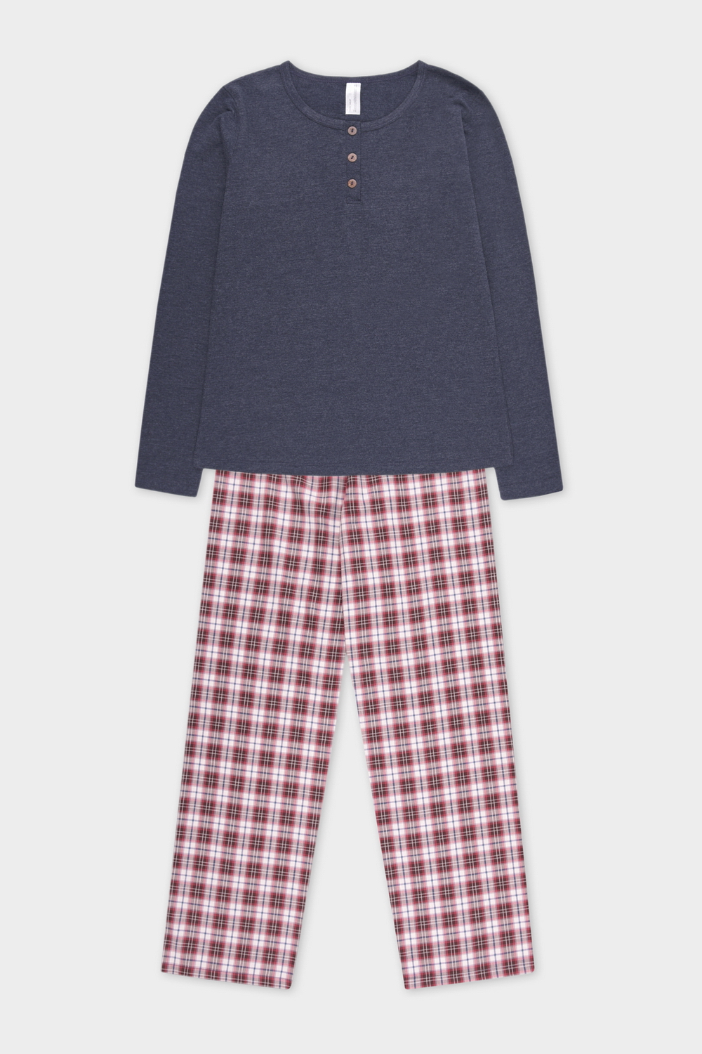 Пижама от бренда Very Neat состоит из двух частей: джемпера и брюк. Верх выполнен из мягкого и приятного на ощупь материала, состоящего из 70% хлопка и 30% полиэстера. Этот состав обеспечивает комфорт при носке, долговечность и устойчивость к деформации. Джемпер имеет длинные рукава и застежку на пуговицах, что добавляет практичности и стиля. Нижняя часть пижамы — брюки — изготовлена из 100% хлопка, что делает их особенно мягкими и дышащими. Клетчатый узор добавляет образу уюта и оригинальности. Брюки имеют свободный крой, что обеспечивает комфорт и свободу движений.Эта пижама идеально подходит для домашнего отдыха или сна, сочетая в себе стиль, комфорт и качество.