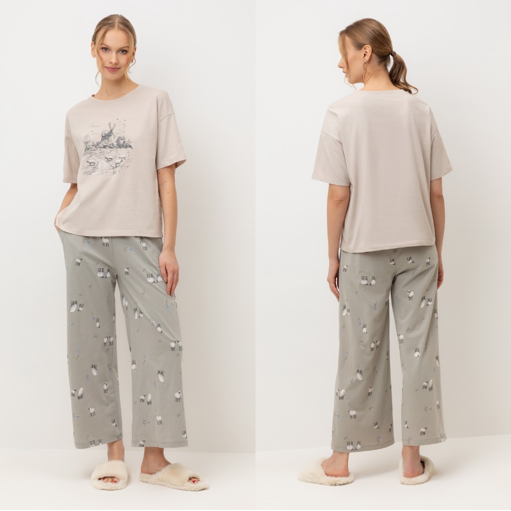 Комплект женский "Very Neat" Овечки на лугу,кремовый, арт. Е 20178 46 (M)