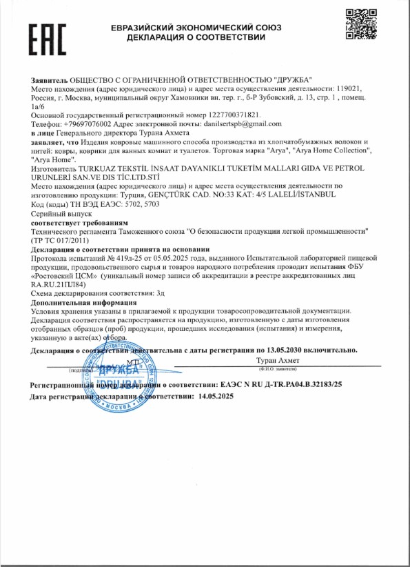 Коврик для ног Arya Mathilda — это сочетание функциональности и безопасности для вашей ванной комнаты. Изготовленный из высококачественного 100% полиэстера с удлинёнными волокнами, он обладает мягкостью, повышенной износостойкостью. Длина ворса обеспечивает не только приятные тактильные ощущения, но и долговечность — коврик долгое время сохраняет форму, не сминается и не истирается. Гипоаллергенный материал подходит даже для чувствительной кожи, а воздухопроницаемая структура предотвращает появление запахов и бактерий. После водных процедур коврик быстро высыхает, оставаясь свежим и гигиеничным. Противоскользящая основа надёжно фиксируется на кафеле, обеспечивая защиту от падений даже на мокрой поверхности. Уход за ковриком не требует усилий: он легко стирается в машинке, не линяет, не деформируется и не садится. Элегантный однотонный дизайн с рельефным узором вписывается в любой интерьер, добавляя ему уюта и эстетической завершённости.