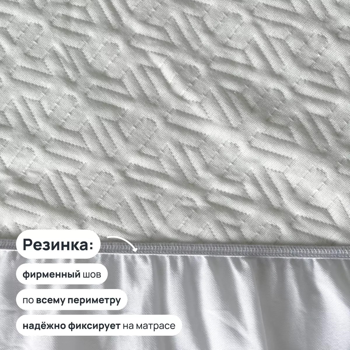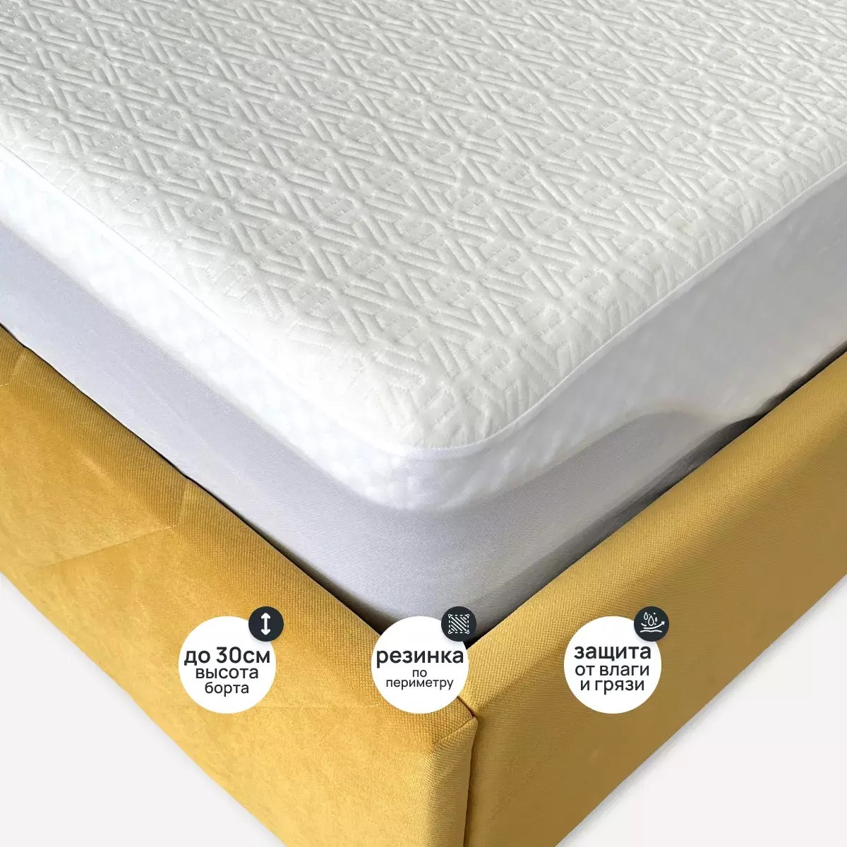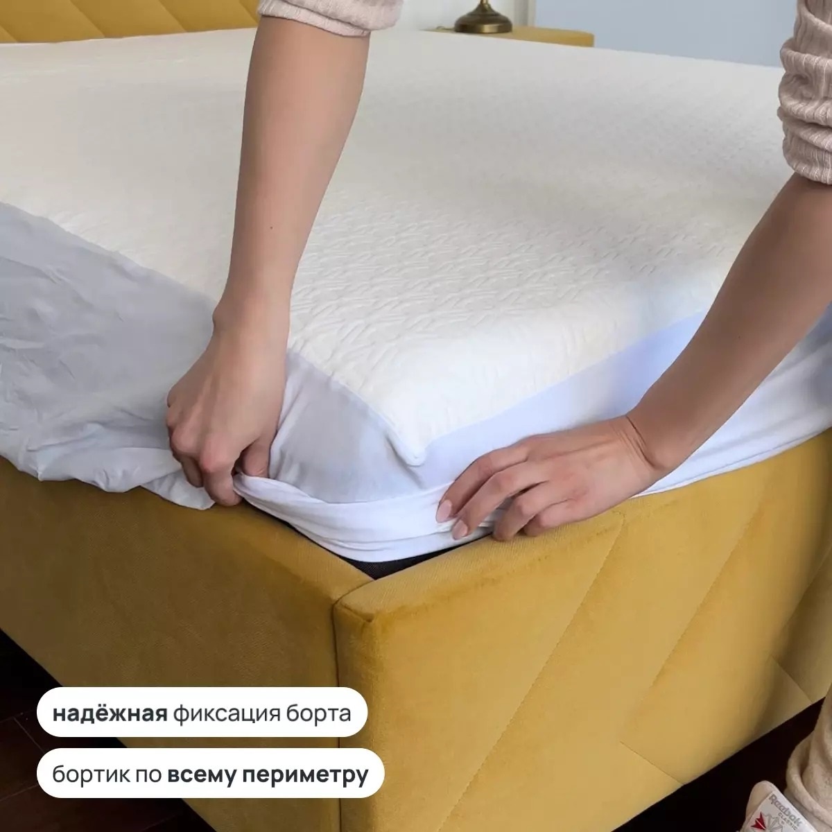 Надежно фиксируется при помощи борта с резинкой по периметру, не дает изделию сбиваться или скатываться во время сна, а также легко снимается. Верхний слой выполнен из итальянского высокоплотного трикотажа с антипиллинг эффектом, который предотвращает образование катышек, не шуршит и позволяет не только защитить матрас от влаги, но и сохраняет его первозданный внешний вид.