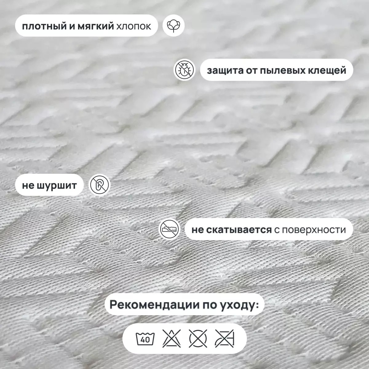 Непромокаемый наматрасник не требует особого ухода, можно стирать вместе с постельным бельем при температуре 30-40 C. Чехол на матрас устойчив к истиранию и способен выдержать более 100 машинных стирок и при этом не деформируется.